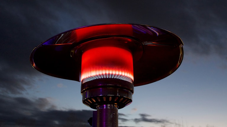An outdoor gas heater generates a warming glow that has a similar effect to a campfire. Compared with electric heaters, this type of outdoor heater is often a practical option for long-term use since electricity is more expensive than gas.