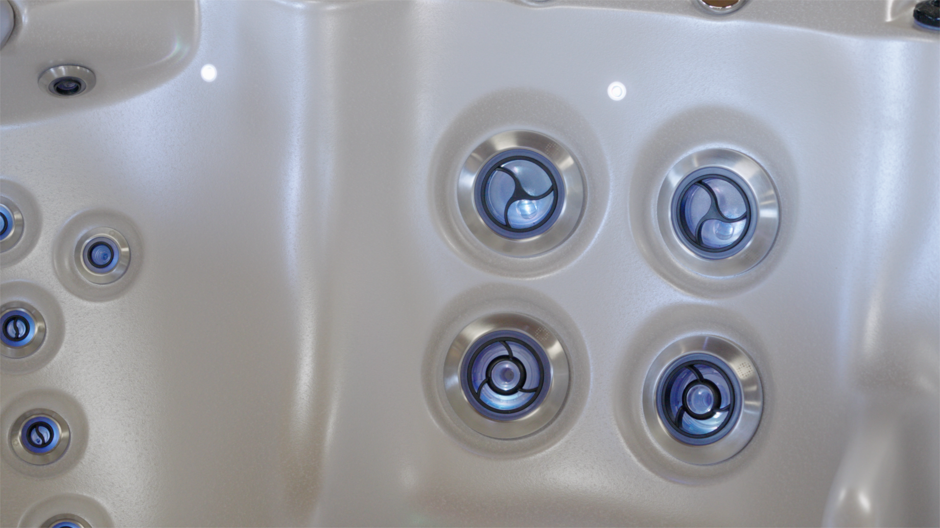 These jets are specifically designed to provide a superior hydromassage and in-spa experience. Unlike most spas with LED lights only the spa shell perimeter, these jets are fully illuminated, creating a visually appealing and soothing effect.