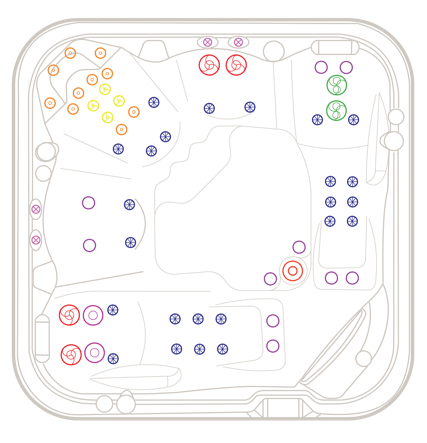 The Vortex Cobalt™ features 2 x 5.5" Directional Jets, 4 X 5.5" Single Roto Jet, 2 X 5.5" Dual Roto Jets, 10 X 4" Directional Jet , 10 X 2.5" Directional Jets, 4 X 2.5" Roto Jets, 24 X 2" Air Jets, 1 X 5" Vortex H2 Volcano Jet