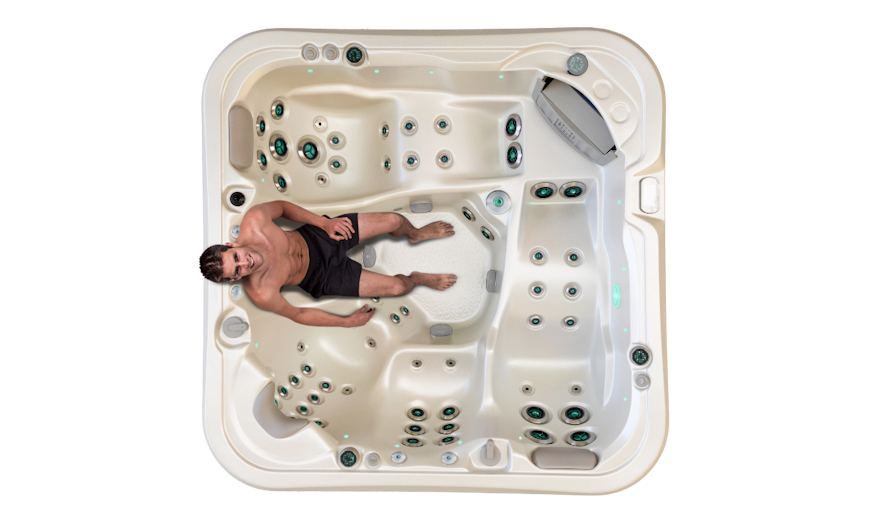This model includes Hydroflow™ stainless steel jets, Hydroglow™ backlit drink holders, Hydroglow jet and topside control lighting, perimeter and cabinet lighting, Hydroglow™ backlit laminar jets, dual layer insulation, Purezone™ UV water purifier, dual layer insulation and timber-free Permaframe™ construction.