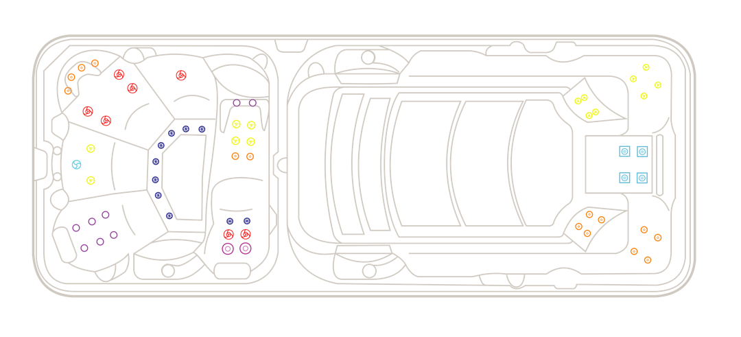 Boasting an innovative internal wall, the Hydrozone™ maintains distinct water environments, allowing for customised jet pressures and temperatures in each zone simultaneously.
