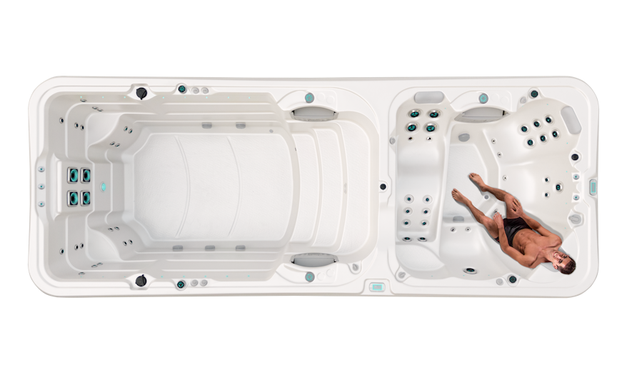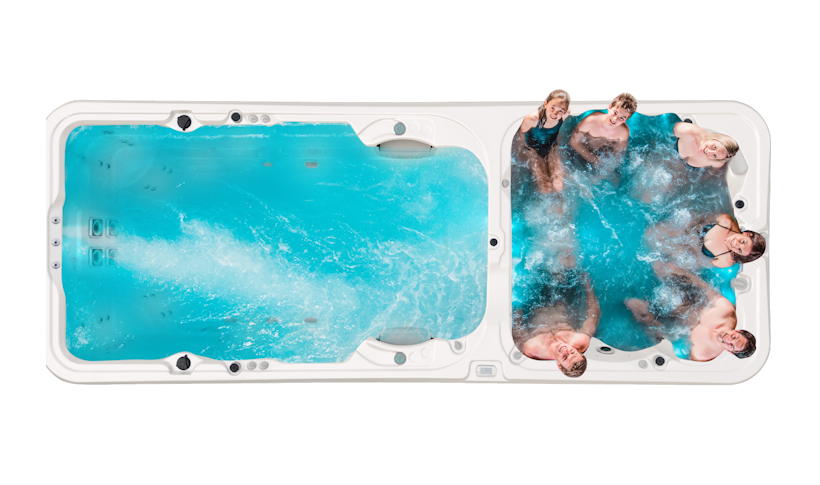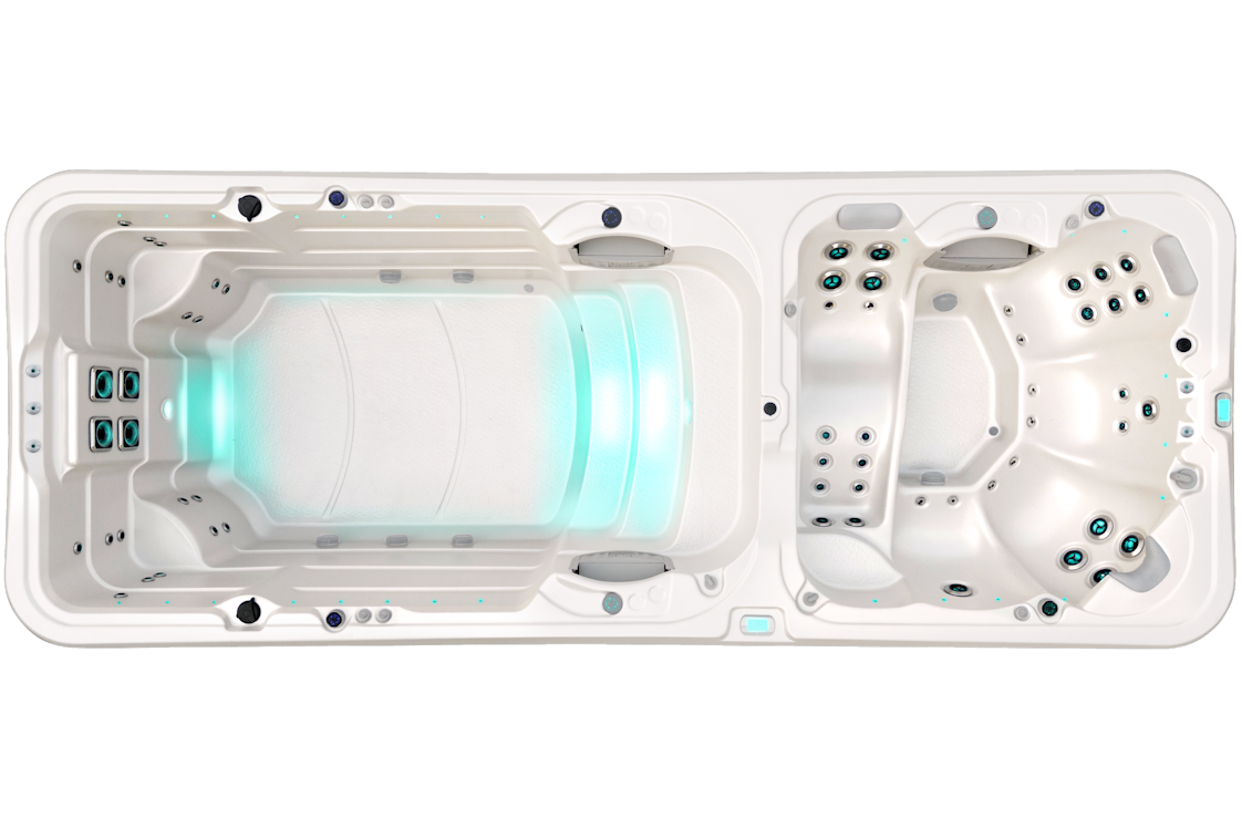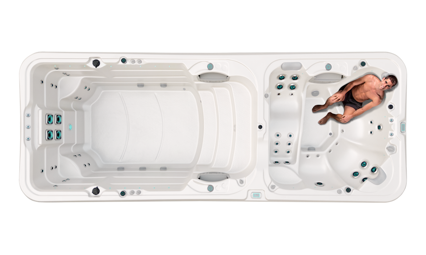 Experience the best of relaxation and recreation with the Vortex Hydrozone™, a dual-zone swim spa that masterfully merges a hydrotherapy spa pool and a spacious swim area. Indulge in the therapeutic benefits of Vortex’s renowned hydrotherapy at one end, and enjoy exercise or family fun at the other.