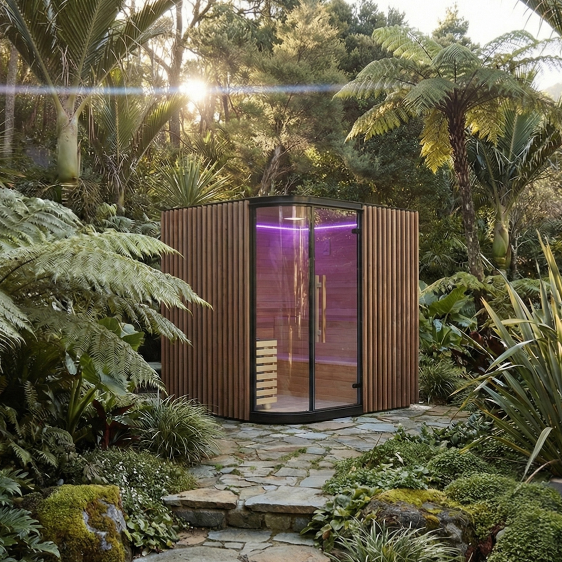 Purpose-built for outdoor living, Elementa™ 6 pairs a low-maintenance, timber-free exterior with a warm FSC-certified timber interior, combining durability and natural comfort in a sauna designed to perform beautifully, year after year.